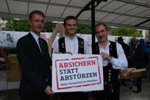 Die Präventionskampagne „ABSICHERN STATT ABSTÜRZEN – Mehr Sicherheit im Holzbau“ hat inzwischen zahlreiche Unterstützer gefunden. Dazu gehören Zulieferfirmen, die über ihre Medien auf die Kampagne aufmerksam machen. Im Rahmen des Tages der offenen Tür der Bundesregierung am 31. August 2014 in Berlin ließ sich der Staatssekretär im Bundesministerium für Umwelt, Naturschutz, Bau und Reaktorsicherheit, Günther Adler, mit dem Kampagnenlogo ablichten. Adler ist im Ministerium für die Bereiche Bauwirtschaft, Stadtentwicklung und Wohnen zuständig. mehr